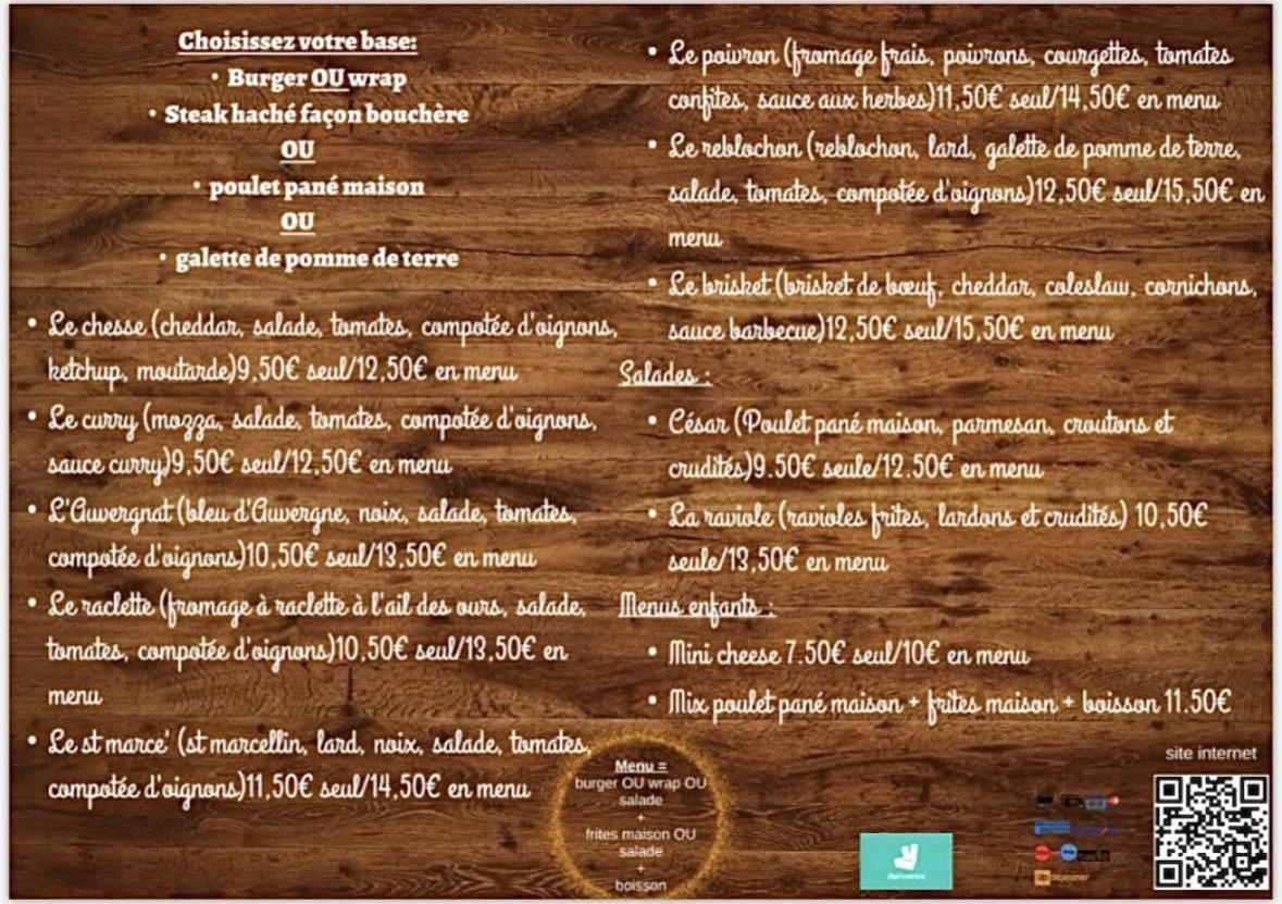 Lamylie burger vous propose une gamme de burgers maison élaborée à partir de produit frais. Retrouvez également nos wraps, hot dog, salade, plat du jour et dessert du jour.
